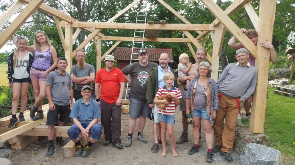 Under 2015 byggde vi nytt ramverk i gammal norsk teknik ”grindbygge”. Vasstak på halmbalshuset. Lerväggar och lergolv i halm- och kubbhusen.