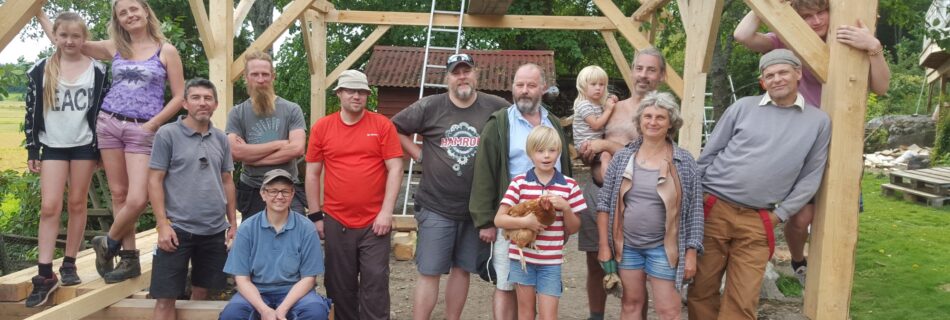 Under 2015 byggde vi nytt ramverk i gammal norsk teknik ”grindbygge”. Vasstak på halmbalshuset. Lerväggar och lergolv i halm- och kubbhusen.