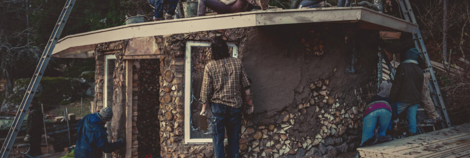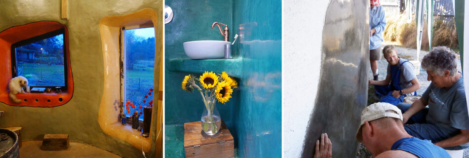 Praktisk kurs – vi lär oss lerputsning av väggar och gör lergolv! Vi tränar i halmbals- & kubb(=ved)husen, lärare är eminenta Hanna Nilsson, arkitekt, lerbyggare och ugnsmurare som varit med och byggt kubbhuset med ugn!